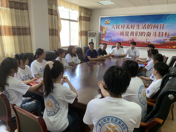 7月6日,出发前,团委书记陈荟芸叮嘱志愿者:将青春汗水挥洒在祖国的大地上,让激昂的青春在新征程中闪光,将爱国热情和成长成才的强烈愿望转化为实际行动,将一颗热忱的心奉献给支教志愿服务活动。12名志愿者怀着真诚和热爱,在指导老师唐浩然的带领下来到了黄石市阳新县木港镇木港小学,受到了易游 (中国版权)官方网站人文学部党总支书记、子山村驻村工作队队长赵卫军,木港镇团委书记曹宇轩,木港镇团委副书记万亮,木港小学校长吴平仁的热情接待。