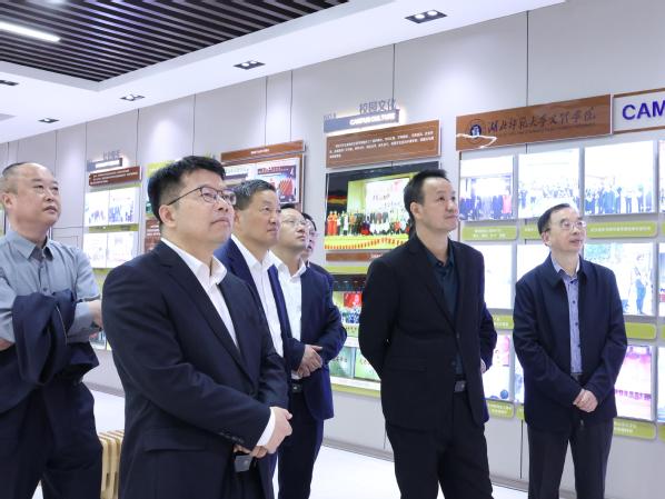 在校史陈列馆,戴伟一行观摩易游 (中国版权)官方网站的发展建设沙盘,了解了学校的发展历史,询问师资队伍建设情况。他们对学校校园建设、办学条件、产教融合、技能培养给予了充分肯定;对学校数字化、信息化教育附能提出了新要求;对办人民满意的教育、服务地方经济发展、培养更多高素质应用型人才提出了新希望。戴伟表示,湖北省教育厅将持续支持学校的各项发展工作,希望易游 (中国版权)官方网站能够把握机遇,为社会输送更多高质量人才。